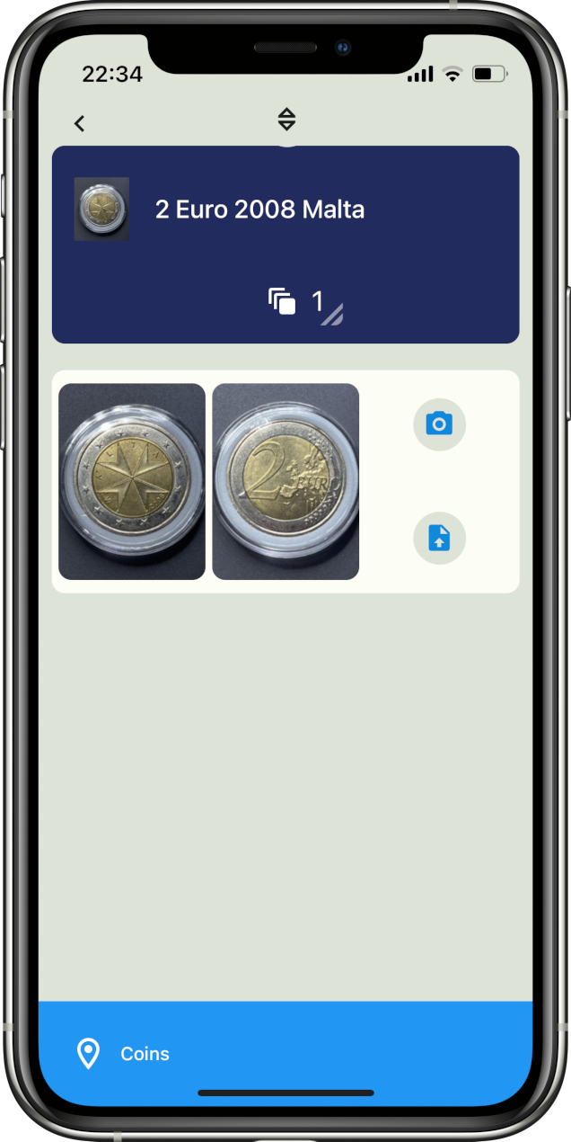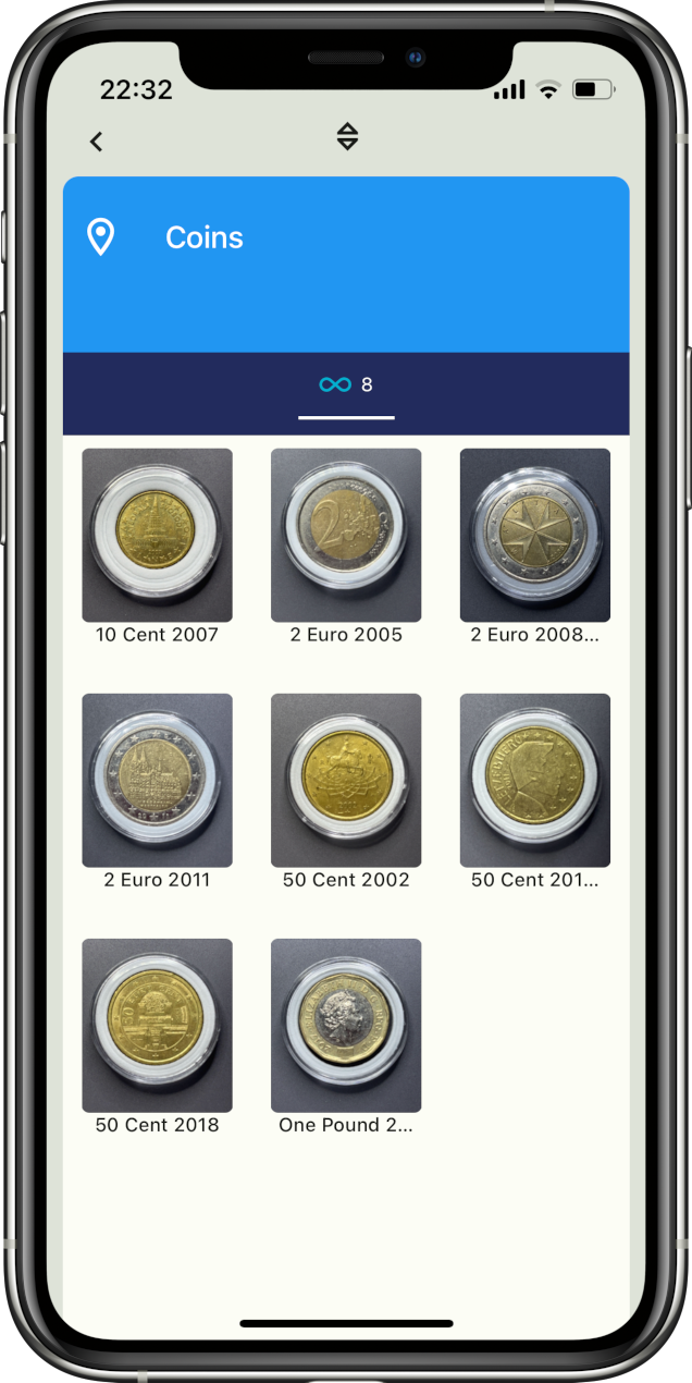 Nachdem die App Gestalt angenommen hatte, merkten wir, dass sich auch andere Sachen damit viel besser sortieren lassen. Die Münzsammlung der Tochter zum Beispiel wurde immer größer und die Suche nach einer bestimmten Münze immer mühseliger. Und fast jeden Tag gab es im Portemonnaie eine neue Münze :)