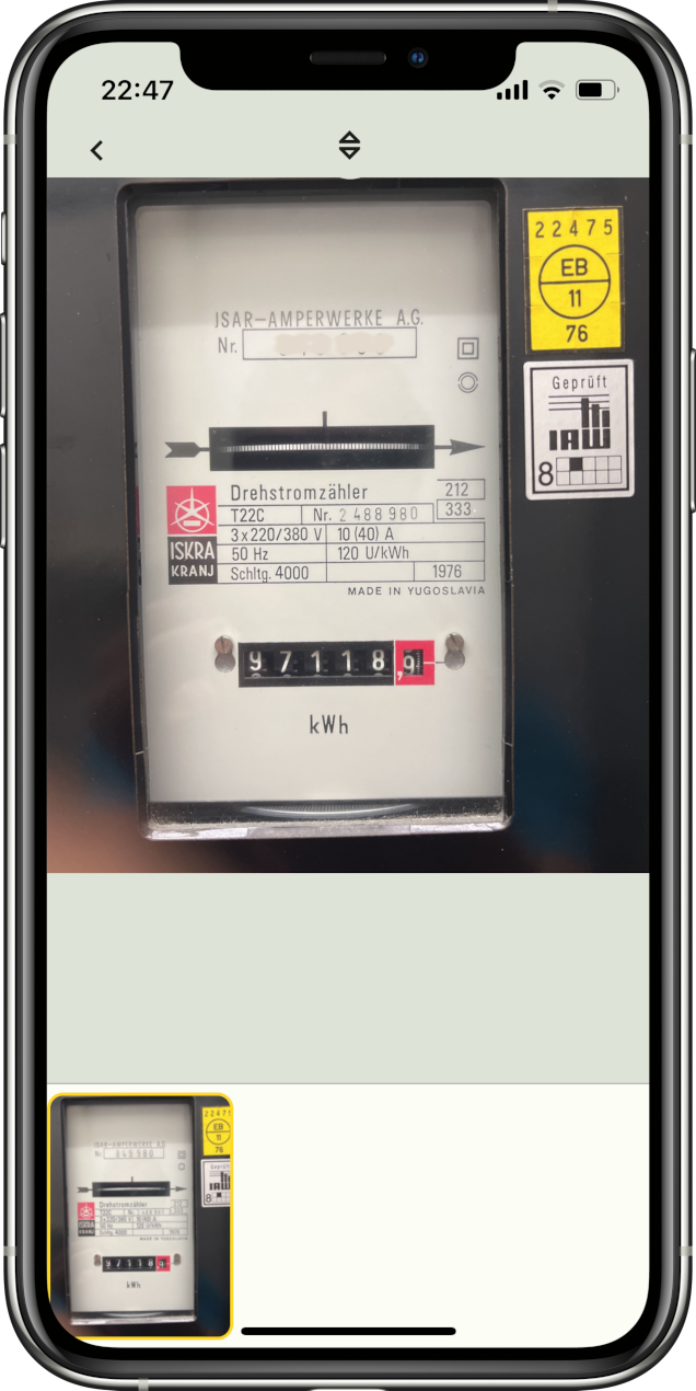Ich lese den Stromzähler regelmäßig ab und schicke dann das Bild an den Versorger.